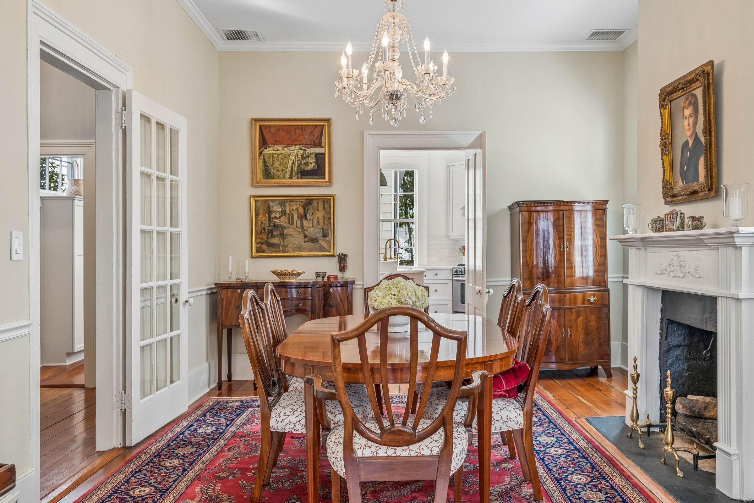 Located on one of Charleston's most cherished streets in the coveted South of Broad neighborhood, this handsome historic residence, built circa 1872, offers timeless character, thoughtful updates, and an exceptional opportunity to own a well-priced home in the heart of the peninsula. Positioned on original high ground in historic downtown, the home offers a gracious and highly livable floor plan. A welcoming foyer opens to generous living and dining spaces, ideal for both everyday living and entertaining. The recently updated kitchen features modern finishes and a breakfast bar, creating a natural gathering space at the heart of the home. Just beyond, a private courtyard provides a charming outdoor retreat for dining or quiet relaxation.Upstairs, the second level offers three well-proportioned bedrooms and two bathrooms, creating a comfortable layout for family living or guests. The bathrooms have been thoughtfully upgraded by the current owners with marble and high-quality finishes, complementing the home's historic character. The four fireplaces ground the main rooms with one gas log set functional in the main living room. The downstairs library/den off the kitchen offers a unique opportunity to have a downstairs bedroom as a fourth guest space or main floor master. The bathroom with shower offers unique flexibility that is hard to find downtown.